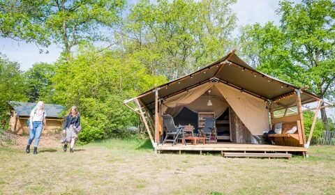 Ben je op zoek naar glamping in Drenthe? Ook luxe overnachten behoort tot de mogelijkheden bij camping Torentjeshoek. Wat denk je van een compleet ingericht chalet met alle denkbare comfort? Of overnacht in een grote safaritent of safaricabin waar ‘glamour’ en ‘camping’ echt helemaal samenkomen? Een ander uniek onderkomen in de boomhut en boomhut XXL midden in de natuur, of de Skylodge met slaapcabine bovenin. Als eens gehoord van een bosboot? Dat is romantiek voor een koppel. Stoere stellen of families kunnen zelfs overnachten in een legertruck. Kijk snel bij de verhuuraccommodaties en kies jouw glamping-avontuur in Drenthe.
